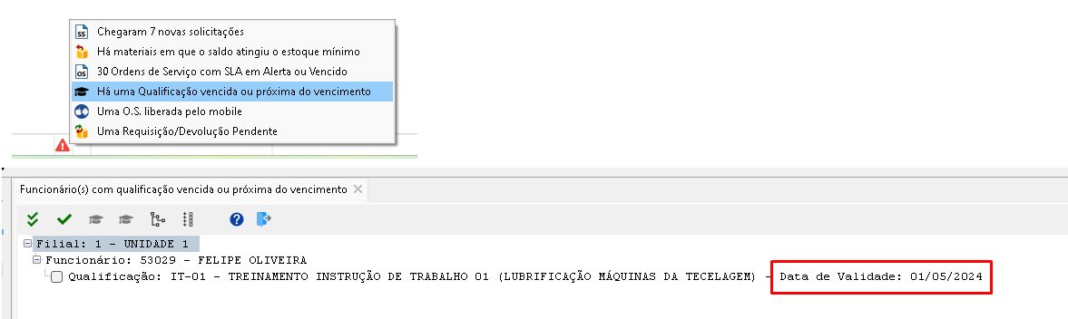 - Ser alertado sempre que uma qualificação estiver vencida ou próxima do vencimento;