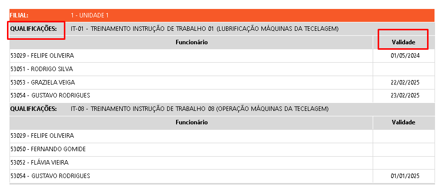 - Consultar relatório por qualificação e assim acompanhar quais funcionários possuem a mesma qualificação;
