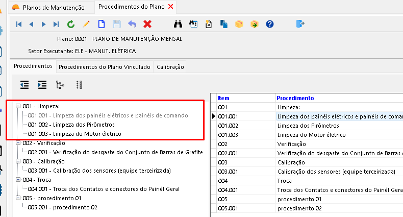 Já para definir os checklist dos procedimentos operacionais padrão necessários para a execução de qualquer manutenção, o sistema permite o cadastramento livre, de forma a definir procedimento um a um, agrupando por nível de execução.