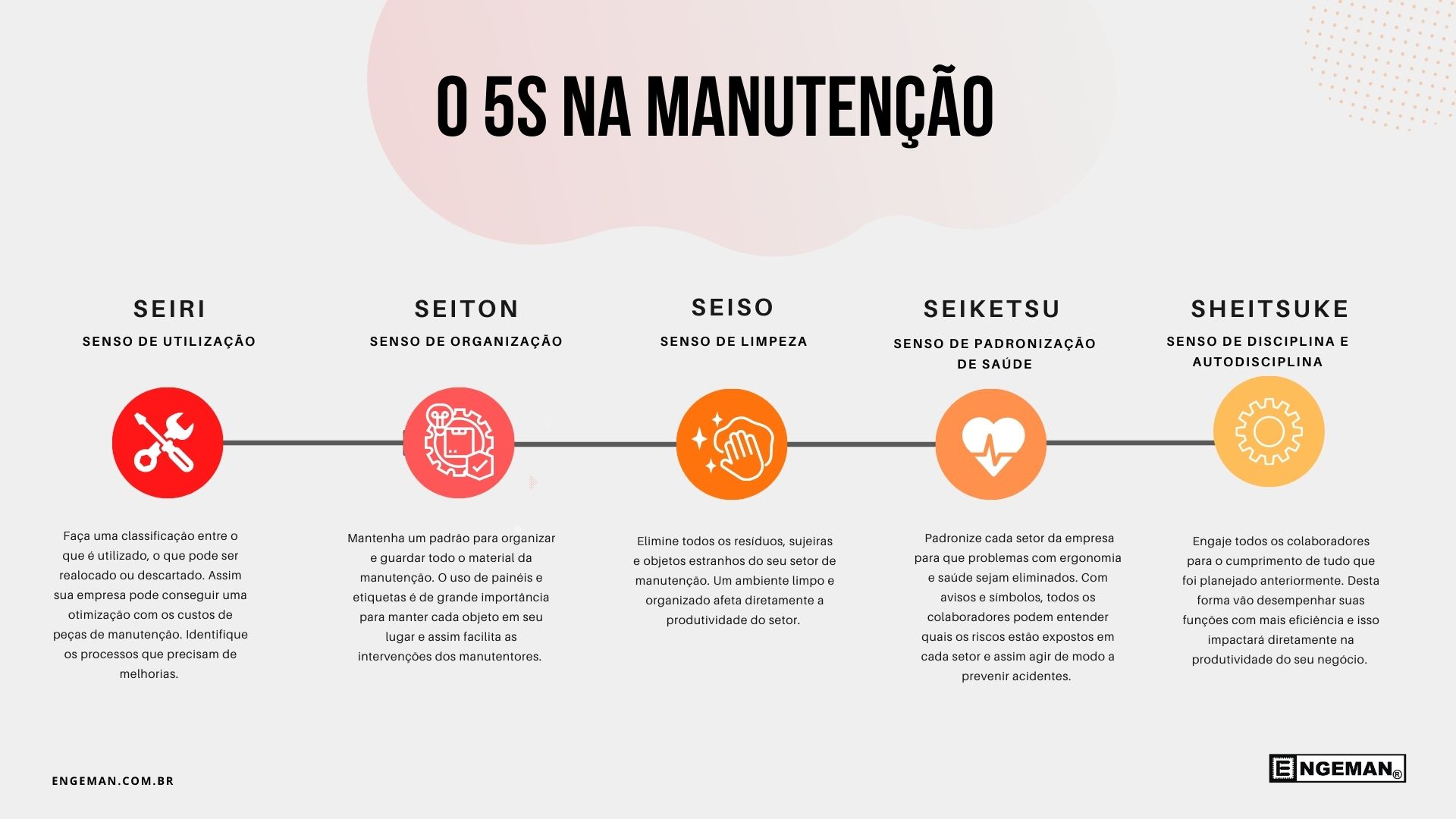 O método 5S é uma das bases do sucesso do Kaizen. Na manutenção, os 5S podem ser aplicados da seguinte forma: