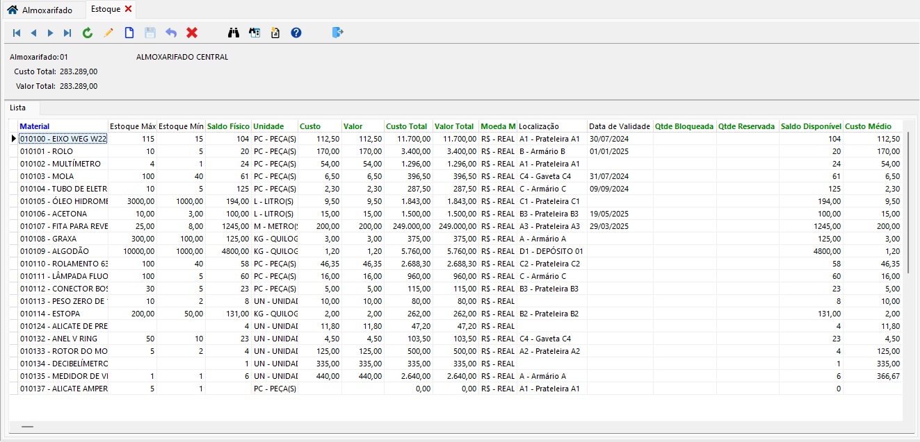 - Cadastro de materiais e controle de estoque: esta é uma das ferramentas principais do nosso software, com ela você consegue controlar todo o estoque físico dos seus insumos, para ter um controle mais eficiente do custo com os materiais.