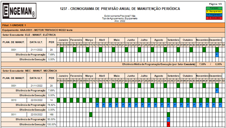 No cronograma de previsão anual de manutenção periódica do Engeman® você pode acompanhar a eficiência de suas programações, execuções e até mesmo verificar as OSs que estão programadas, reprogramadas e executadas.