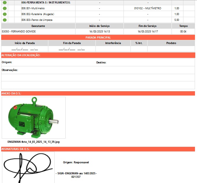 Vamos imaginar, por exemplo, um prestador de serviço que faça manutenção em motores elétricos industriais. É muito fácil apenas realizar o serviço e simplesmente cobrar pelo valor do serviço que está no orçamento, mas sem nenhuma documentação que servirá como comprovação e histórico de realidades executadas.
