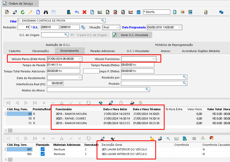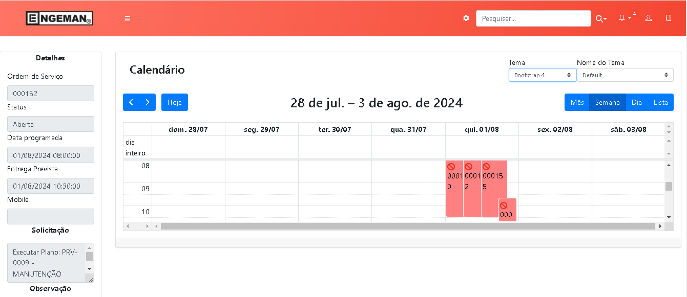 - Data programada: é a data prevista para que o serviço seja realizado;
