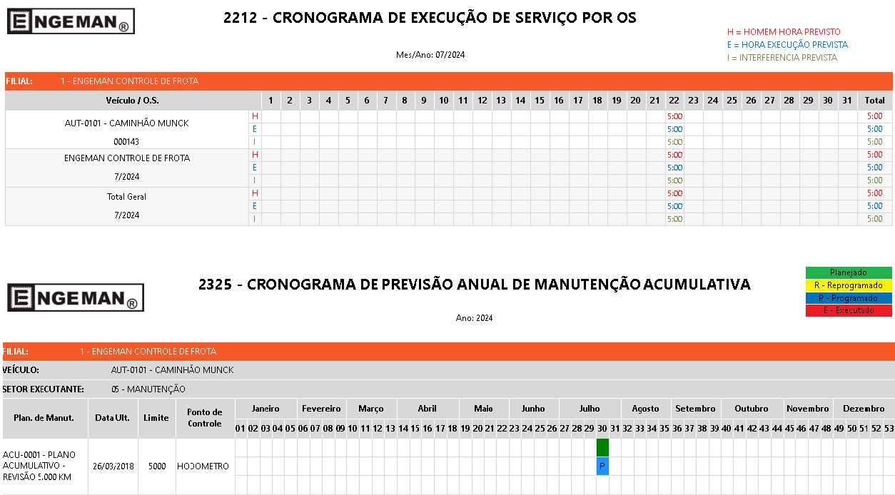 - O calendário de manutenção