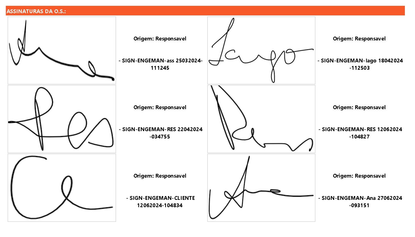 - Assinatura: a assinatura do responsável pela execução do serviço.