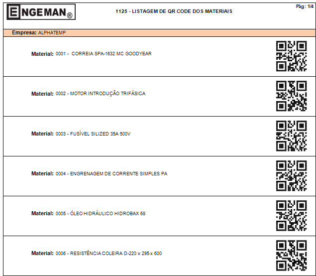 É possível utilizar os QR Codes no software Engeman® para agilizar ainda mais os seus processos de manutenção. Ao cadastrar um material, um ativo ou um funcionário, o software Engeman® gera automaticamente um QR Code para o item cadastrado. Imprima suas etiquetas de acordo com a necessidade dos setores (Materiais, Aplicações, Funcionários, Solicitações de Serviço) e coloque nos locais correspondentes.